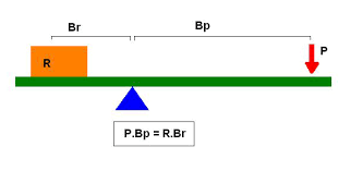 - Brazo de potencia; Bp: la distancia entre el punto de aplicación de la fuerza de potencia y el punto de apoyo.